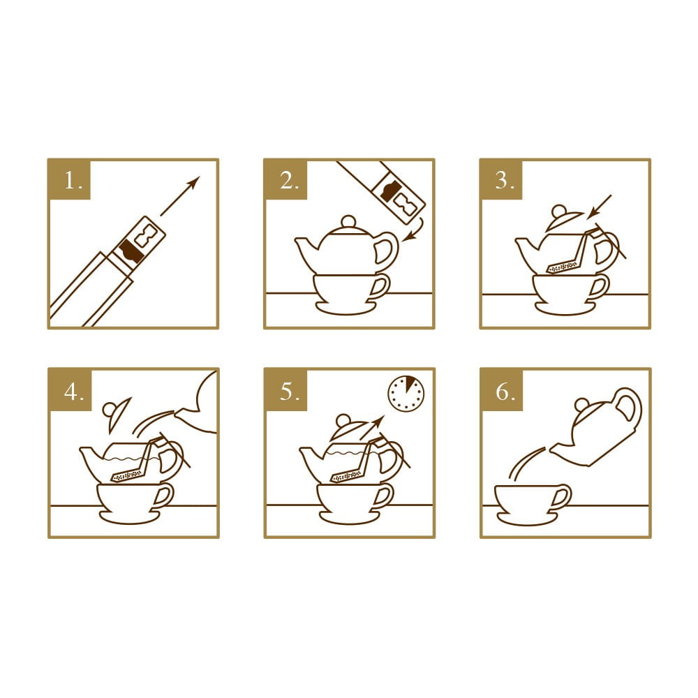 Na dzbanek o pojemności 300 ml użyć 1 saszetkę. Zaparzać przez 8-10 minut w 100°C. Polecamy stosowanie wody filtrowanej lub źródlanej (o niskiej twardości).